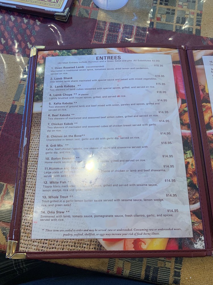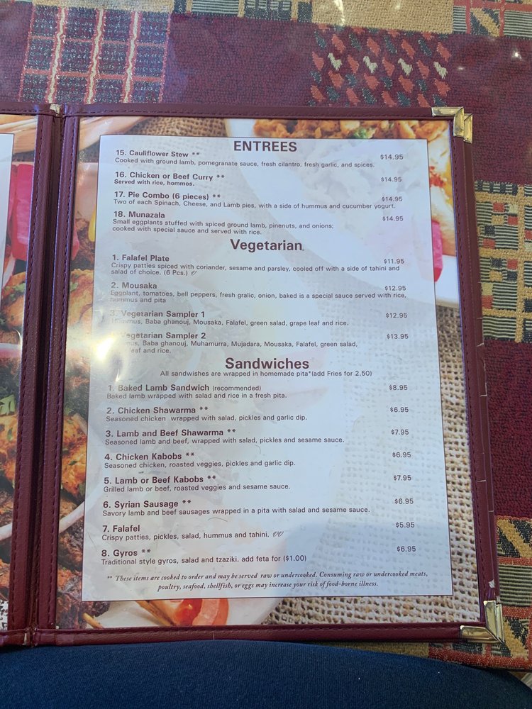 Introducing Damascus Grill, a hidden gem in Littleton, CO offering a variety of Mediterranean delights. With a cozy and welcoming ambiance, Damascus Grill prides itself on its traditional home-style cooking, featuring dishes like Okra Stew, Munazala, and Cauliflower Stew. For beverage options, indulge in refreshing choices like Syrian Banana Shake and Mint Tea. Guests rave about the Gyros Plate and Whole Trout entrees, highlighting the flavorful and well-prepared dishes. Vegan and vegetarian options are plentiful, making it a must-visit for all food lovers. The attentive service and authentic Middle Eastern atmosphere create a memorable dining experience at Damascus Grill.